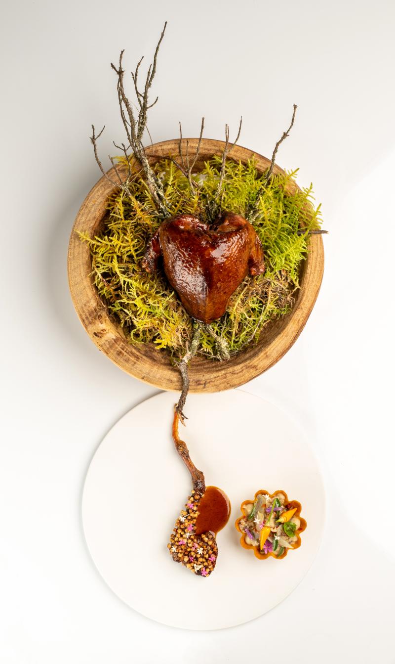 Fin 2019, après avoir conservé l’étoile décrochée par Stephan Paroche pour Cicada, au Hameau des Baux, il prend la tête de la brigade du M, restaurant gastronomique du Château de Massillan, à Uchaux. Le domaine éco-responsable 4 étoiles doit rouvrir au printemps, le covid en décide autrement. « Mon second, Stéphane Bourekba et moi-même, sommes arrivés au château en juin. Immédiatement, il a fallu tout réinventer : je ne cuisine qu’avec ce qu’offre la nature, lorsqu’elle nous l’offre. Je n’ai donc ni carte ni menu. La liste de nos produits est présentée sous la forme d’un nuage de mots aux convives, ils choisissent leurs ingrédients, précisent ce qu’ils n’aiment pas, optent pour une formule en 5 ou 7 services, et nous partons de là. » La méthode désarçonne les hôtes habitués, comme les équipes de salle, qui doivent apprendre à évoquer ce qui sera proposé, sans jamais vraiment le révéler. Très vite, le concept remporte un franc succès.