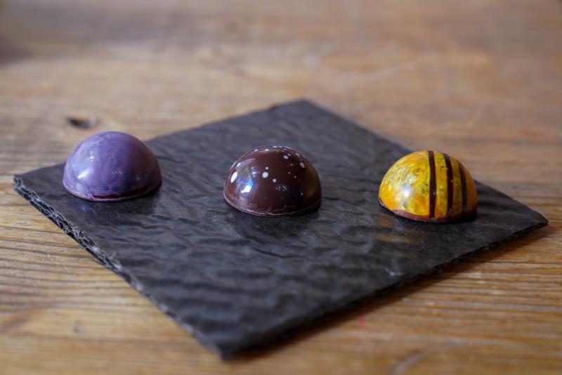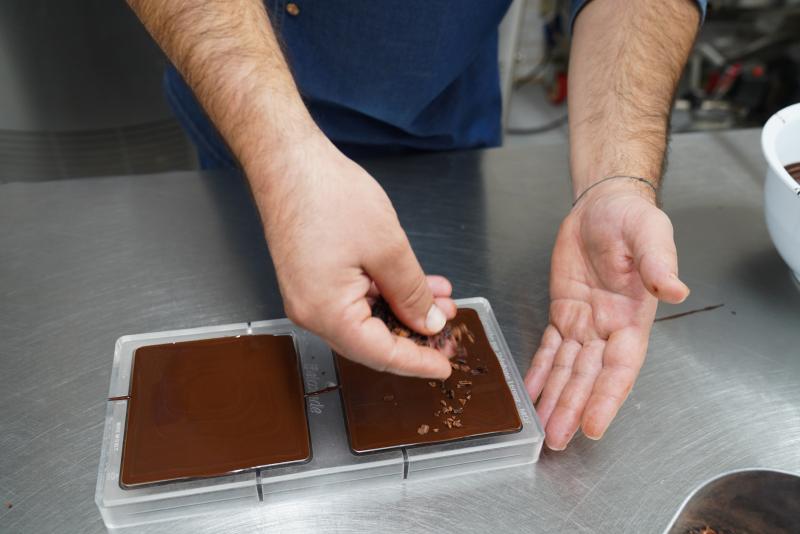 Entre 9 et 10 grammes, c'est le juste poids d'un bonbon de chez Mathieu Taborcia. Dix grammes de bonheur, l'idéal pour mesurer l'onctuosité de pralinés gourmands sans trop en faire, pour juger des ganaches qui jouent la carte de la subtilité. Pas de thym arrogant ou de lavande agressive qui viendraient masquer le chocolat comme on le déplore parfois. Qu'elles soient au café du Brésil, au thé Earl grey, au caramel fleur de sel ou à la gelée de menthe (avec une infusion de thé de la maison Bourgeon à Salon-de-Provence), les ganaches délicates de Mathieu Taborcia ensorcellent. Celles au chocolat pure origine, plus typées, séduisent tout autant. Et lorsqu'on goûte ses pétales au gingembre confit, irrésistibles, difficile de ne pas devenir addict à cette texture sensuelle, à ce parfum puissant que le chocolat vient souligner. « Je ne suis pas farfelu dans mes goûts mais les parfums annoncés sont présents », argumente ce passionné : il trouve chaque saison inspirante, et pour Noël, travaille depuis quelques semaines sur une nouveauté qui combine pâte d'amande à l'orange et une ganache au miel de châtaignier. « On a envie de faire découvrir le goût du chocolat comme nous l'aimons nous-mêmes », tranche-t-il. L'avantage de Mathieu Taborcia, qui a rejoint le petit club des chocolatiers pour lesquels on est prêt à prendre la route où que l'on vive, c'est sa formation de pâtissier chocolatier. Cette matière fragile et envoûtante, dont il apprécie la brillance, il la fabrique aujourd'hui, après avoir appris à la travailler. Après un crochet par la boulangerie, un cheminement avec les Compagnons du Devoir pour un CAP de pâtissier, après avoir effectué son grand tour qui l'a fait voyager pendant huit ans, en France (Nantes, Paris, Lille) et à l'étranger (Australie, Nouvelle-Zélande), ce Lyonnais d'origine a obtenu son titre de Compagnon en pâtisserie. « Un pâtissier touche au monde du chocolat mais n’approfondit pas autant », analyse celui qui a aussi œuvré dans la formation par goût de la transmission. Aussi s'est-il spécialisé dans le chocolat au fil des années.