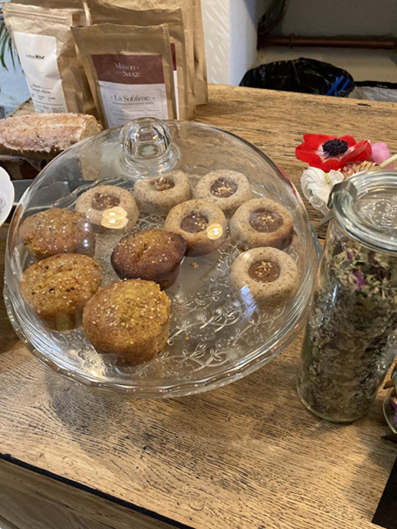 Un bel espace derrière une vitrine, avec mur de pierres et étagères en bois clair sur lesquelles s'épanouissent des plantes en pots, face à une table généreusement garnie de fleurs fraîches. Ici, on observe le principe du circuit court et toutes les fleurs viennent du Var voisin. « On travaille avec des producteurs régionaux et on pratique la cueillette sauvage dans des champs que nous ouvrent des agriculteurs d'ici », précise Mathilde qui, avec Coline, veille sur cette nouvelle adresse. Adhérentes du collectif La fleur française, elles proposent des bouquets champêtres du plus bel effet, aériens et poétiques. Le lieu abrite aussi un salon de thé où sont servis les mélanges de La Cave à thés de Lorène Millet et les tisanes de Maison Sauge, qui accompagnent les gâteaux de la pâtisserie Encore un morceau qui s'installe pas loin, à Endoume. Des ateliers voués au végétal sont aussi proposés par cette belle boutique atypique où on cultive le sens de l'accueil.