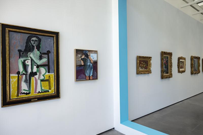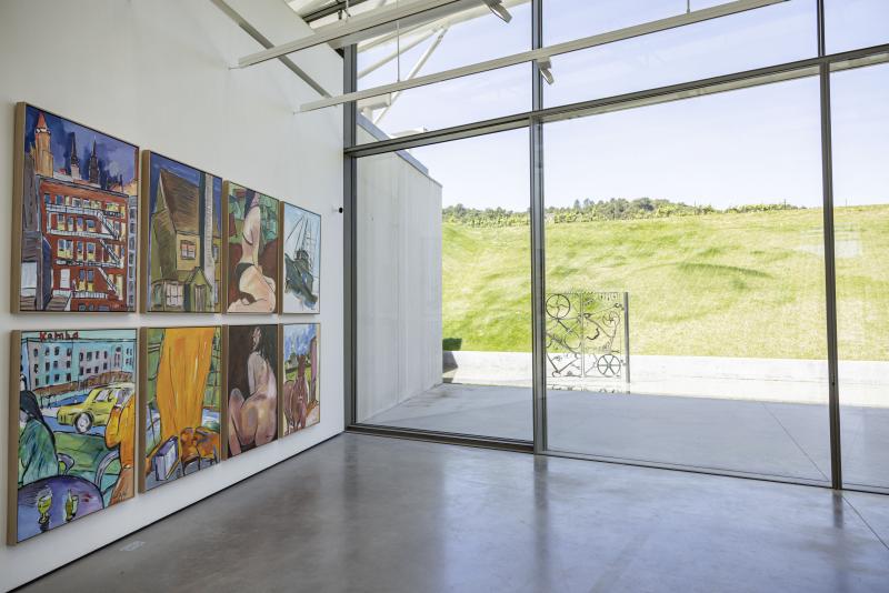 L’une des cinq galeries d’art du domaine, le Pavillon Renzo Piano, accueille aussi « Drawn Blank in Provence », une nouvelle exposition des peintures de cette figure de la musique populaire nord-américaine. La première en France. Y sont réunis 23 tableaux issus de sa série de dessins « Drawn Blank », réalisés lors de ses tournées en Europe et en Amérique entre 1989 et 1991, mis en regard avec quelques toiles de grands maîtres de l’art du XXe siècle, dont la pratique a été largement marquée par leur séjour dans le sud de la France. Chagall, Pissaro, Monet, Matisse, Renoir, Picasso ont été ses maîtres. Ces peintures très colorées de l’artiste américain, produites entre 2007 et 2009, mêlent des images de voyages, paysages urbains, bars qu’il a dû fréquenter lors de ses tournées. Il demeure cependant très difficile d’identifier les lieux, Dylan mélangeant les influences, les pays, dans une peinture qui se rapproche parfois du fauvisme. Les deux portails réalisés à partir d’objets industriels forgés, exposés derrière les baies vitrées du Pavillon, font écho au wagon que le lauréat du prix Nobel de littérature a créée spécifiquement pour intégrer le parcours Art et Architecture du domaine.