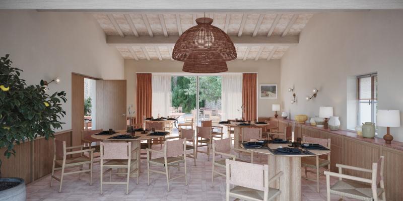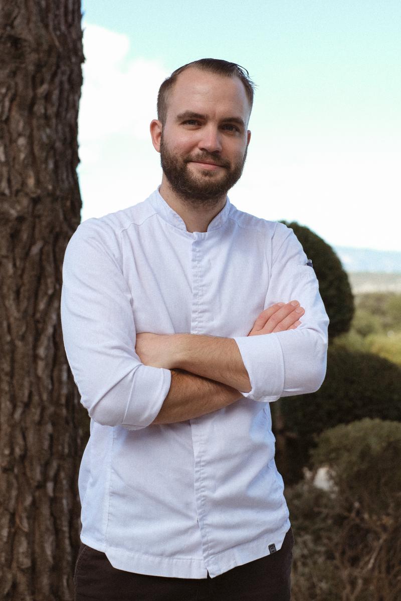 La salle du restaurant gastronomique a été complètement revue, avec une palette claire et une ouverture sur la terrasse qui amène le regard vers l’extérieur, terrain idéal des longs apéritifs. C’est le domaine de Noël Bérard, chef trentenaire, dont le travail a été couronné par une étoile au Michelin lors du palmarès 2022. Sur ses expertes épaules, repose le succès de la nouvelle table. Bonite à cru, artichaut de Provence, mulet (cuit à la vapeur) à la poutargue, poireaux et lait à l’ail nouveau, agneau de Sisteron réveillé par une sauce à l’anchoïade, boeuf du Luberon (issu d’un petit élevage de 60 bêtes à Gordes), volaille du Thor, truite de l’Isle-sur-la-Sorgue et poissons de Méditerranée, cerise de Ménerbes…
